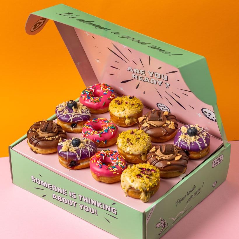 If your donuts do not arrive within one working day or have been badly damaged during transportation, we will send you a new box free of charge!