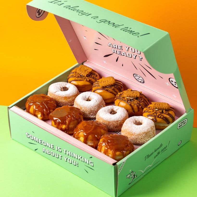 Our donuts are sent by express delivery immediately after production. Our specially developed gift box keeps them fresh!