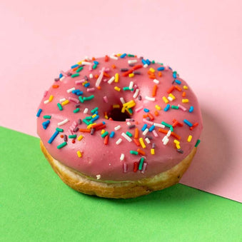 🌱 VEGAN - Ring donut dipped in DT pink icing and sprinkled with origi... Show more
